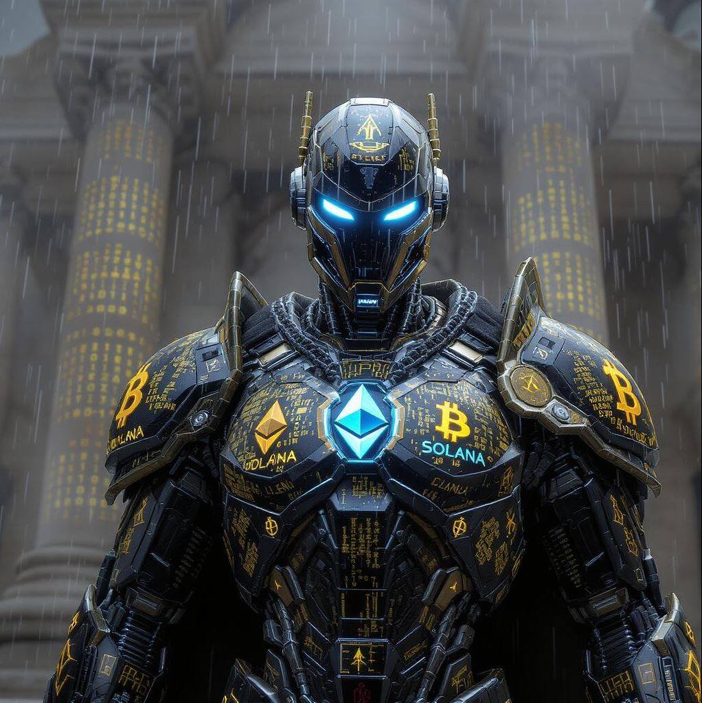 Soulkeeper of Code 是“Guardians of the Digital Chain”系列NFT的第三枚,描绘一位由量子代码构成的守护者,象征区块链技术的不朽性。其背景设定于算法取代传统帝国的世界,核心符号融合比特币(BTC)、以太坊(ETH)和Solana(SOL)的区块链元素。作为第七守护者之一,Soulkeeper在信任崩塌时觉醒,以代码为唯一真理载体,承载着区块链预言中的关键故事。