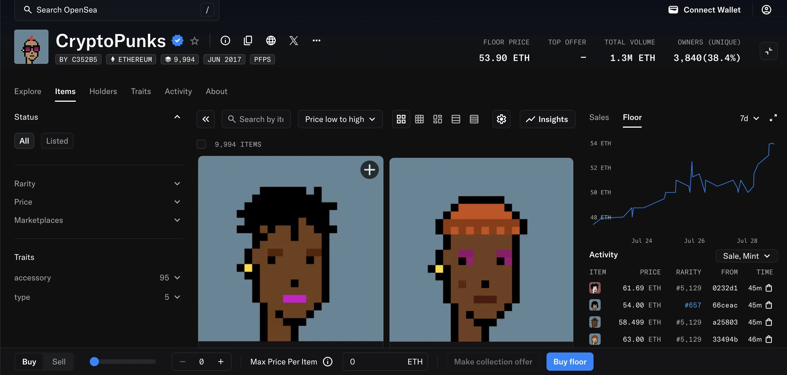 随着以太坊价格突破4000美元关口,沉寂已久的NFT市场正迎来显著复苏迹象。以CryptoPunks为代表的蓝筹NFT项目交易活跃度呈现爆发式增长,数据显示该系列上周交易量达2460万美元,环比激增416%,创下2024年3月以来的最高纪录。