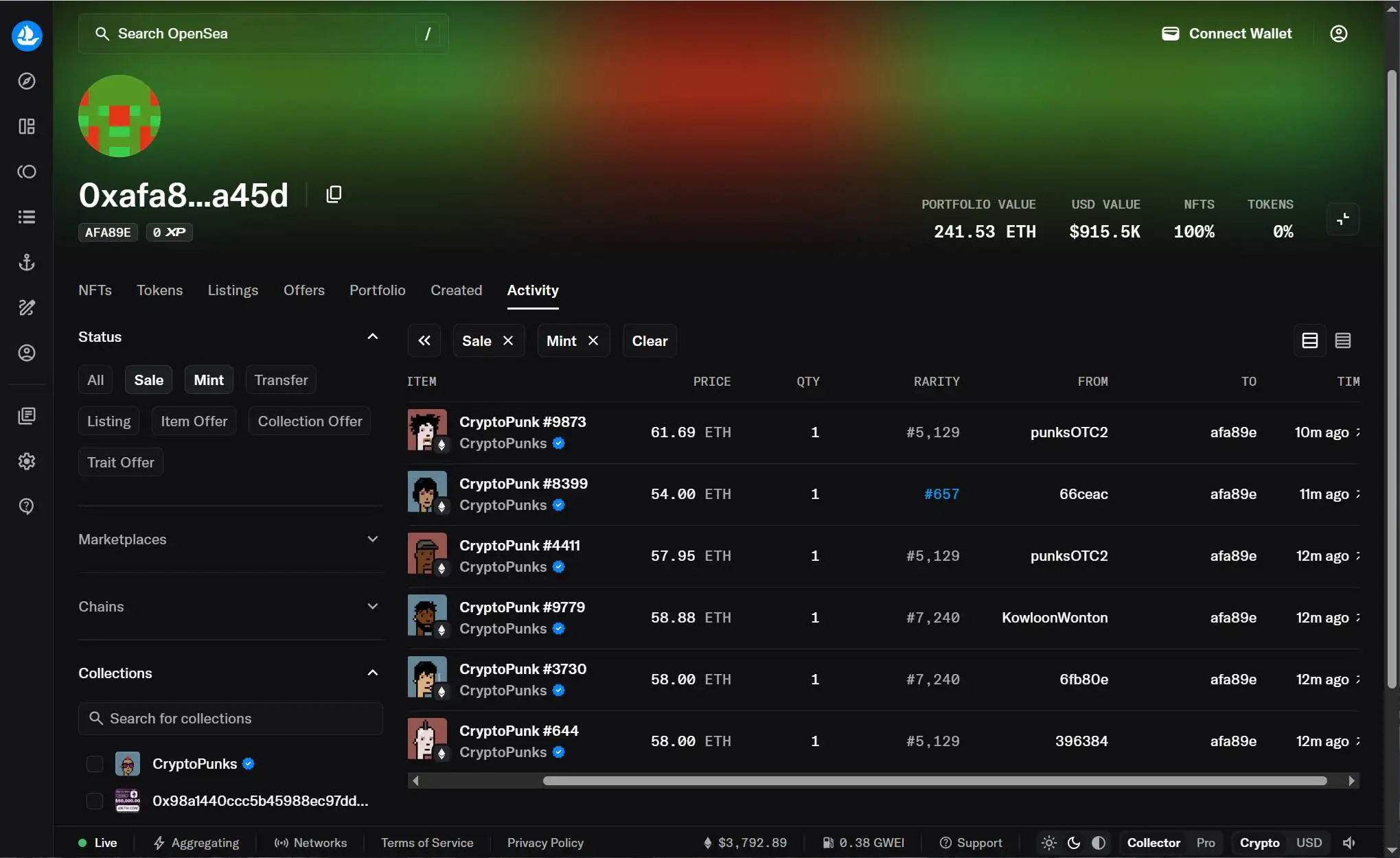 鲸鱼地址15分钟内购入6枚CryptoPunk,总价值130万美元