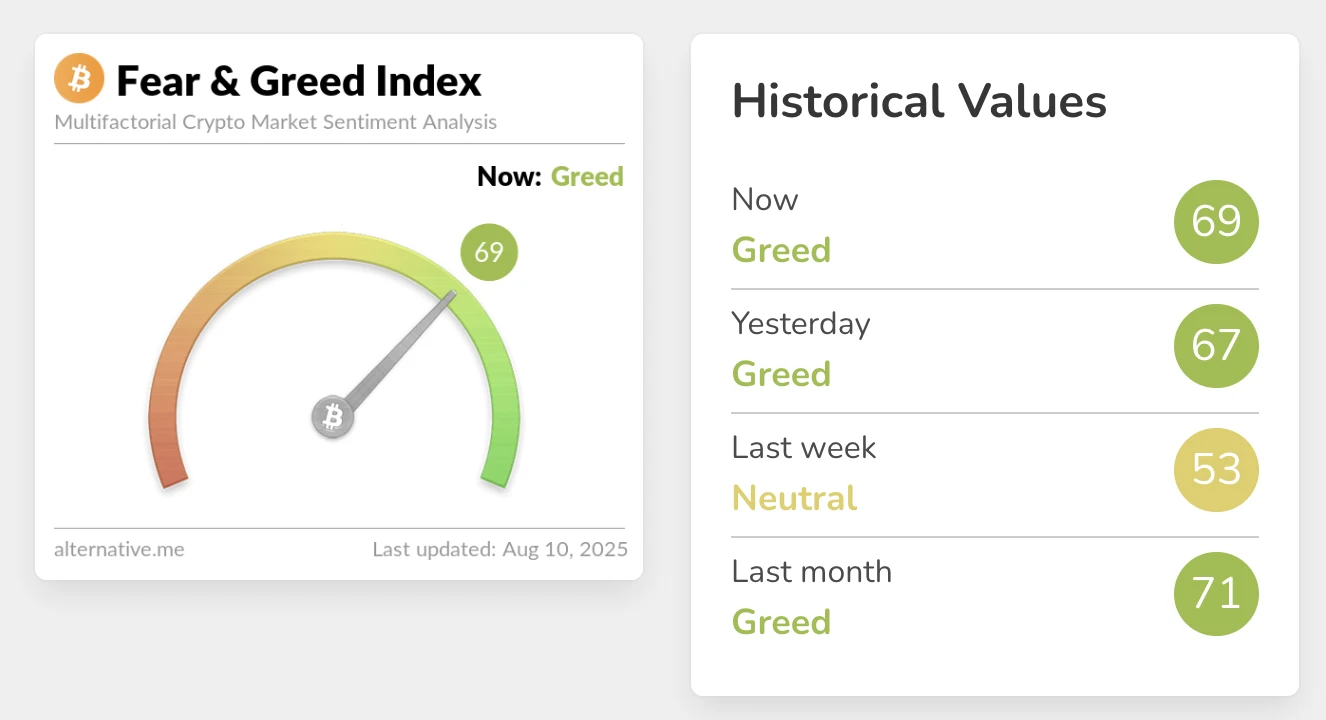 加密货币恐慌与贪婪指数升至69 市场情绪持续贪婪