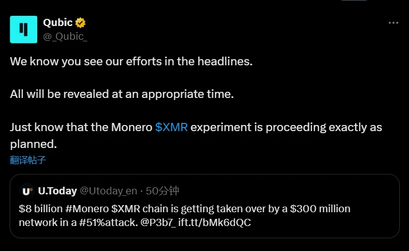 Qubic响应门罗币51%攻击事件:实验按计划推进
