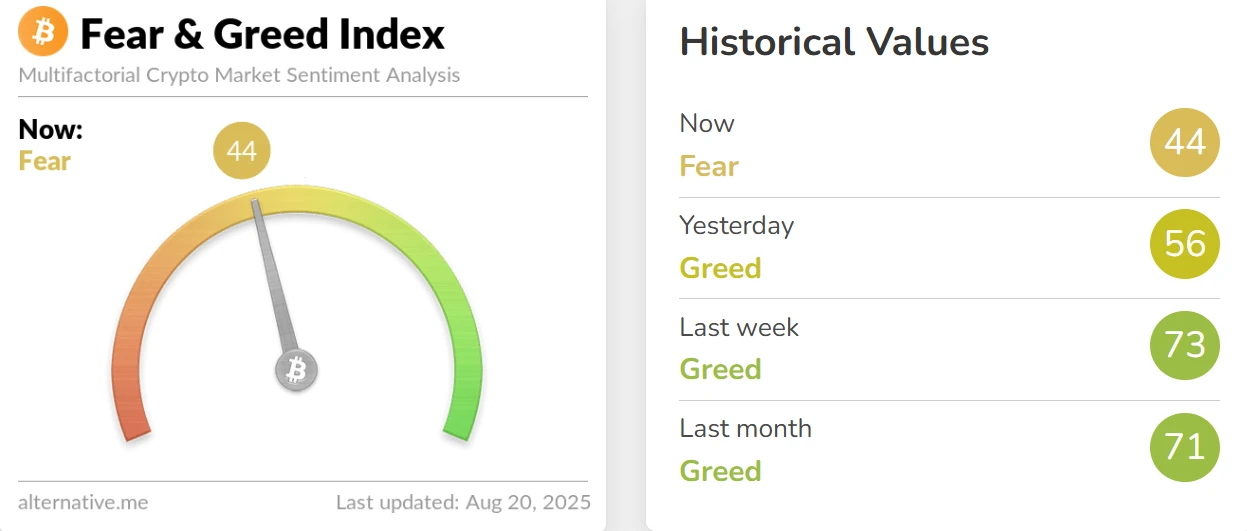 加密货币恐慌与贪婪指数小幅回落,市场仍处贪婪状态