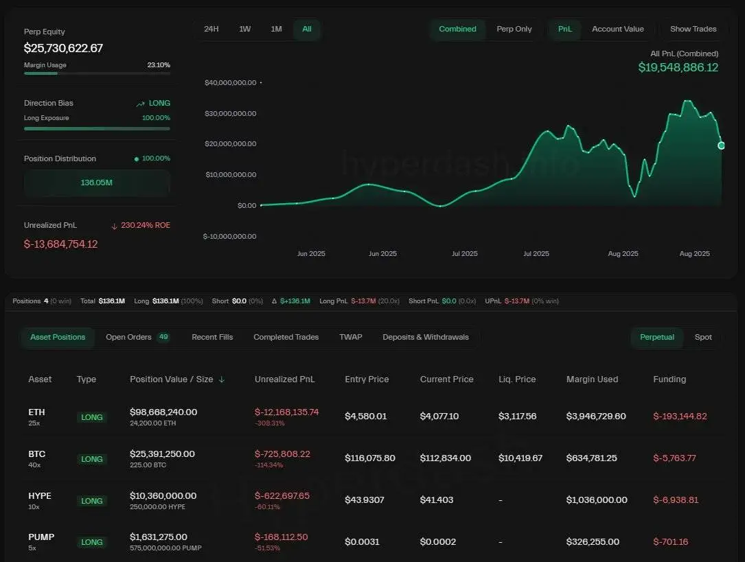 黄立成因多头仓位浮动1368万美元,持仓含高杠杆加密资产