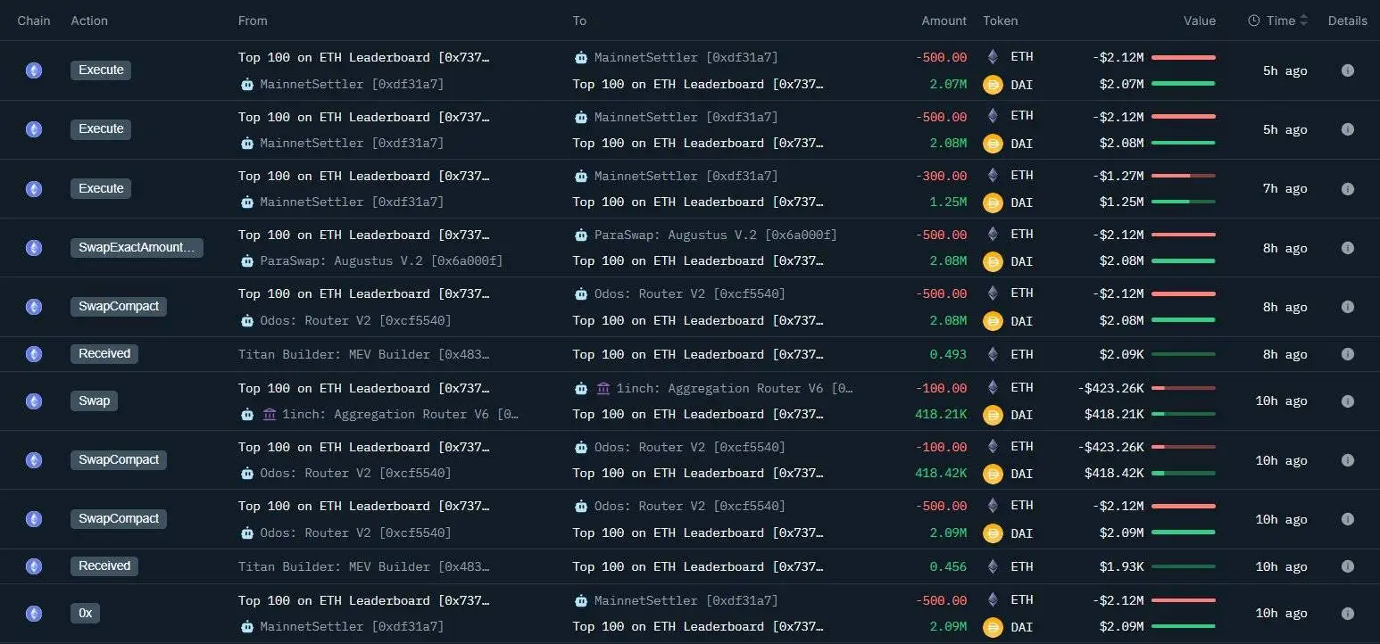 链上地址0xbee…1EEEE单日抛售6314.12枚ETH,累计转移价值达4840万美元