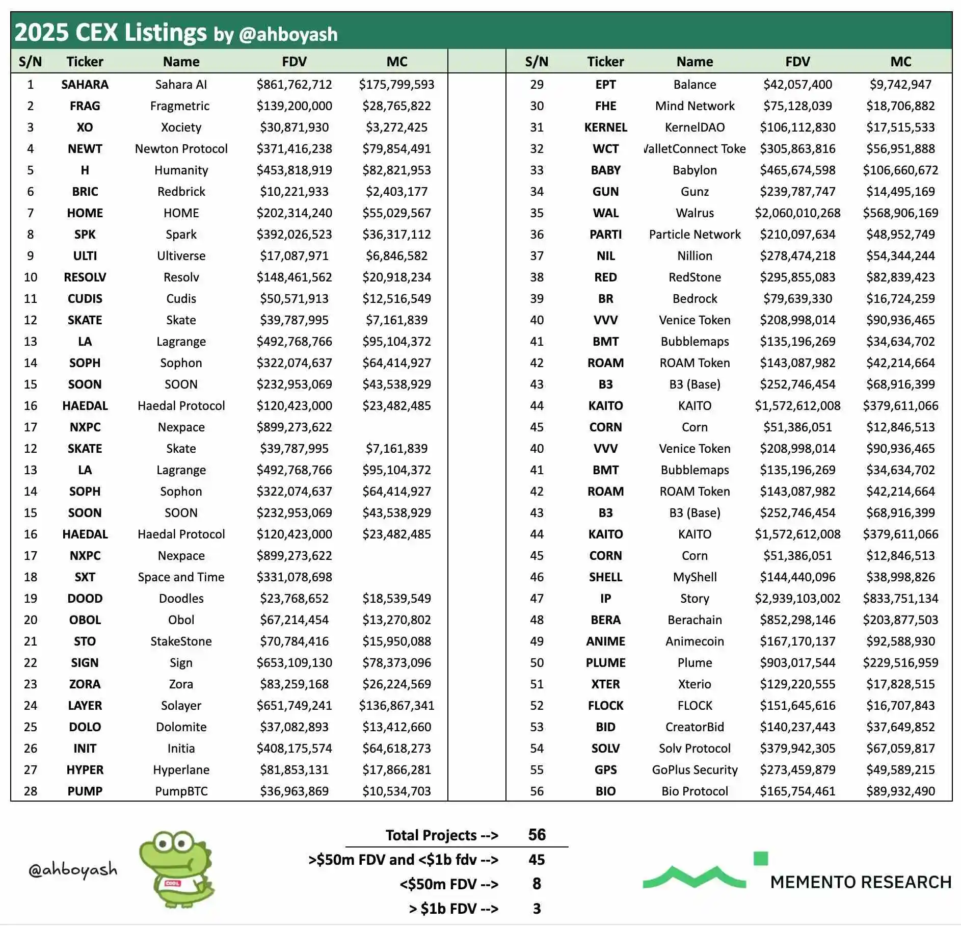 2025上半年56个风投代币完成TGE 仅3种FDV超10亿美元