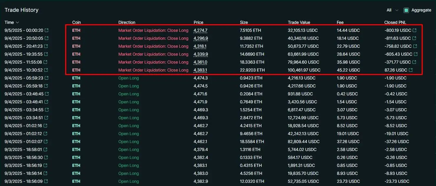 交易员James Wynn以太坊多头仓位再遭部分清算 清算价下调至4,361美元
