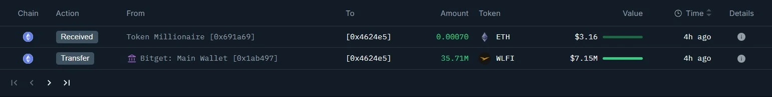 链上分析师监测:某新建钱包自Bitget提取3571万WLFI代币