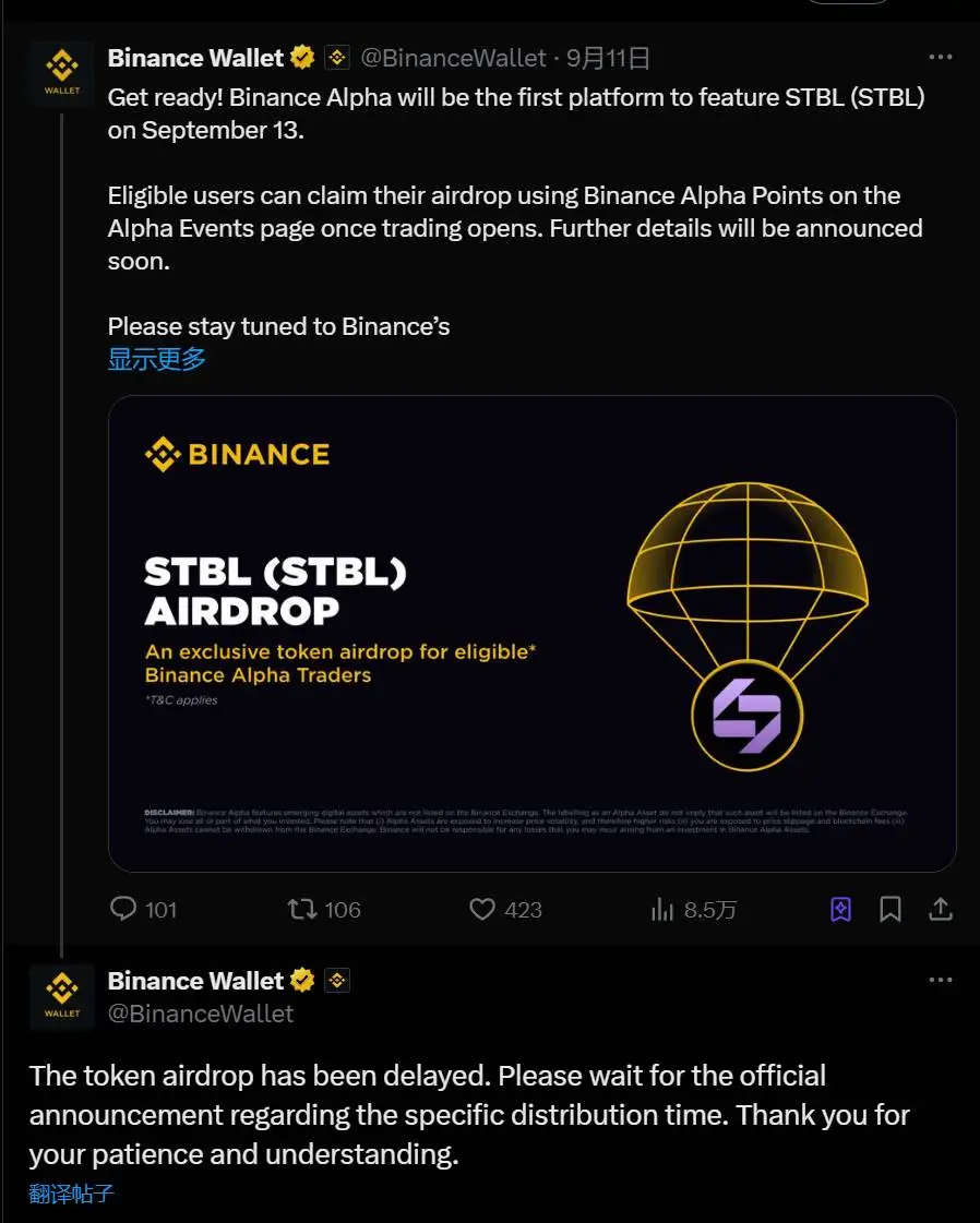 币安宣布CESS代币空投计划延期,将尽快恢复