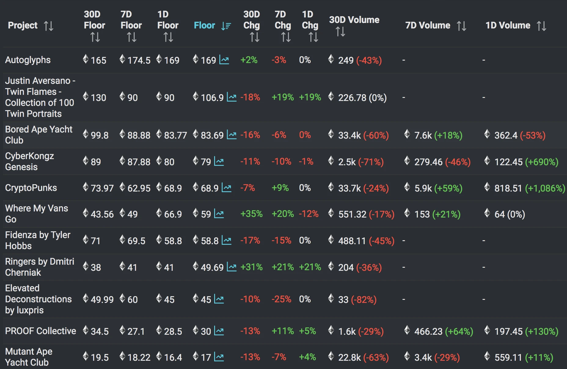 NiftyRiver除基础分析外,特别标注欺诈项目数据,监测显示部分时段前十热门铸造项目中60%存在欺诈风险。Flips平台通过可视化图表展示地板价、持有者等核心指标,并实时同步OpenSea交易数据。