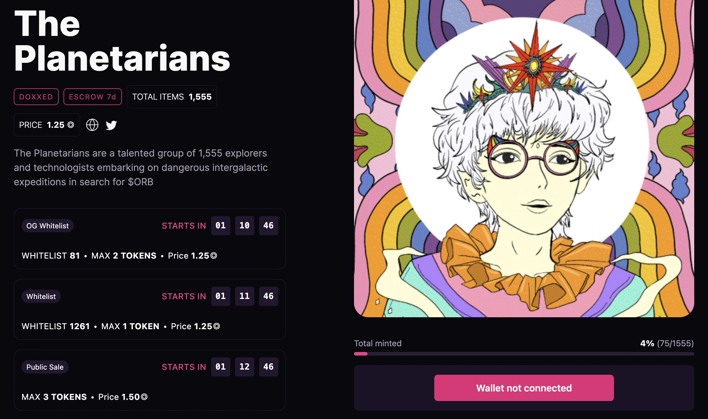 - 分层发售 | 阶段 | 比例 | 价格 | 限制 | |---|---|---|---| | 团队预留 | 10% | - | 锁仓6个月 | | 白名单 | 60% | 0.05ETH | 2个/地址 | | 公售 | 30% | 0.08ETH | 无限制 |
