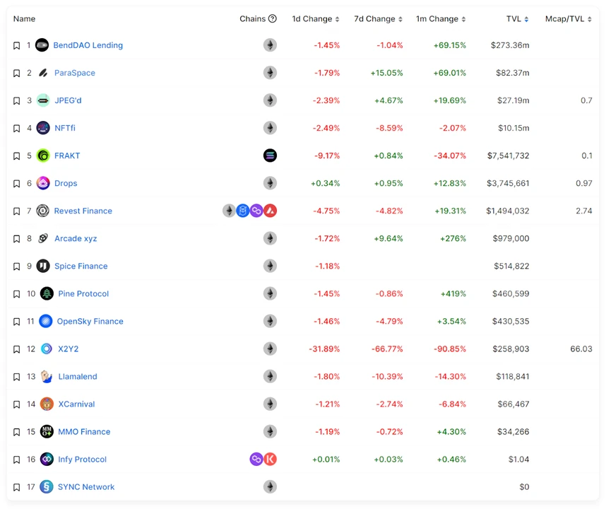 ParaSpace在未推出代币激励的情况下,仅用2个月时间便跃居NFT借贷赛道TVL第二位。其总锁仓量呈现持续上升的曲线特征,反映出产品设计精准切中NFT持有者的流动性需求。这种增长态势与Blur早期发展轨迹相似,验证了其"DeFi化NFT借贷"的产品定位已形成市场共鸣。