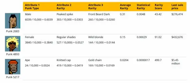 - 基础属性稀有度(如CryptoPunks的皮肤颜色出现频率)