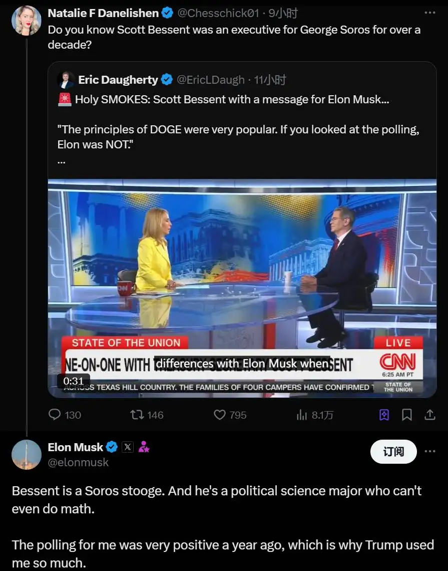 马斯克指控美国财长贝森特受索罗斯操控 数学能力遭质疑