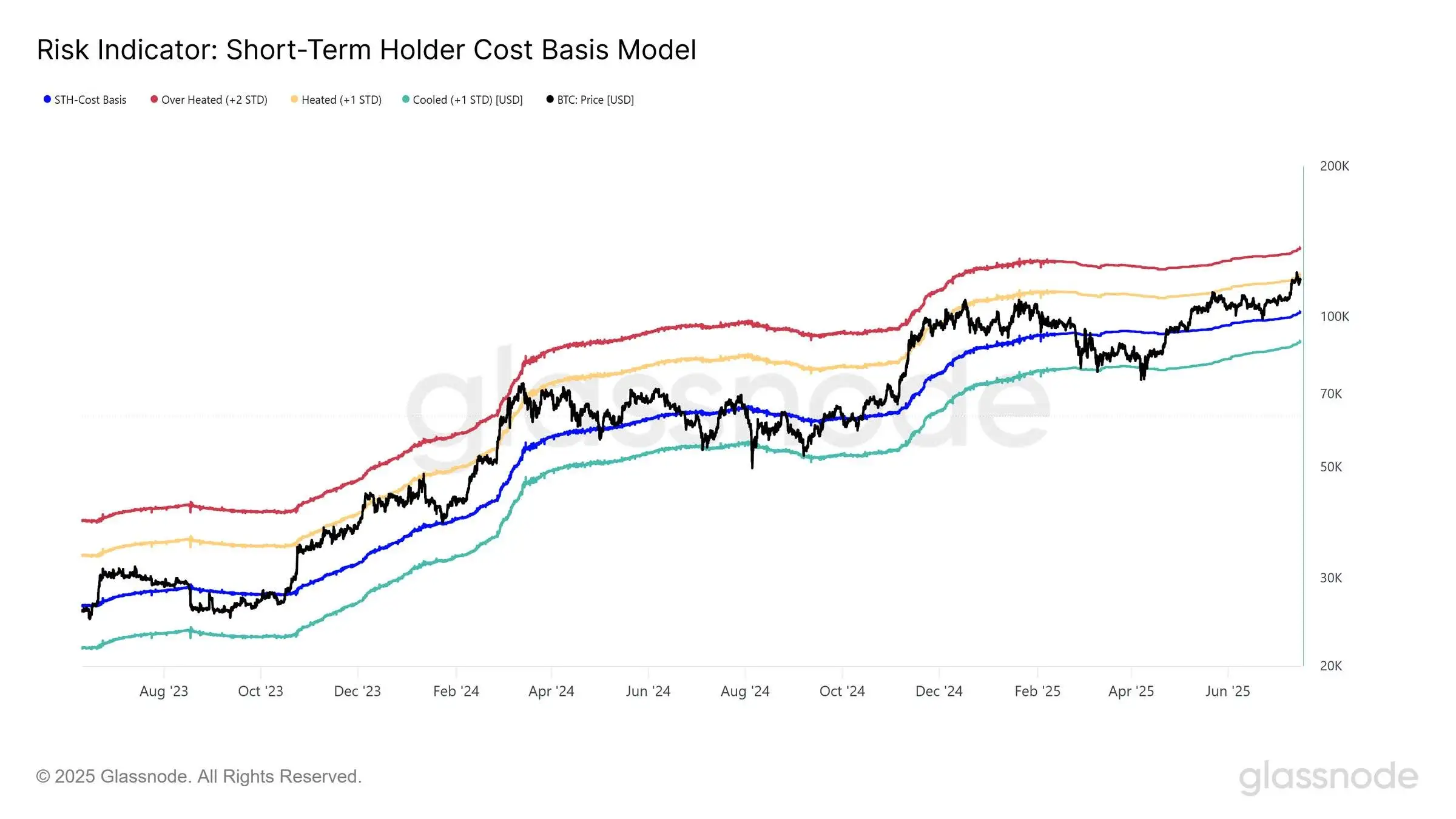 Glassnode:BTC 价格触及短期持有者成本上方 12 万美元,下一阻力位或达 13.6 万美元