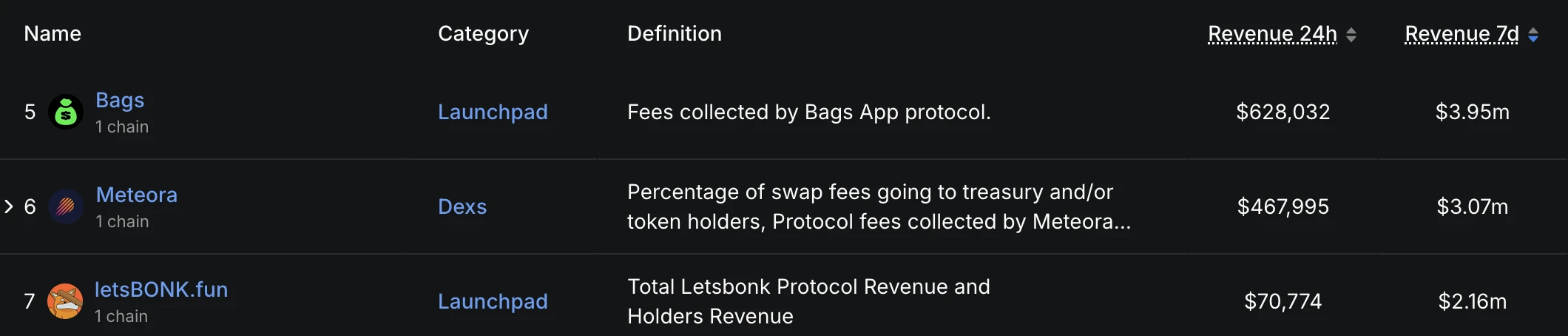 Solana生态Memecoin平台BAGS七日收入超越letsBONK.fun