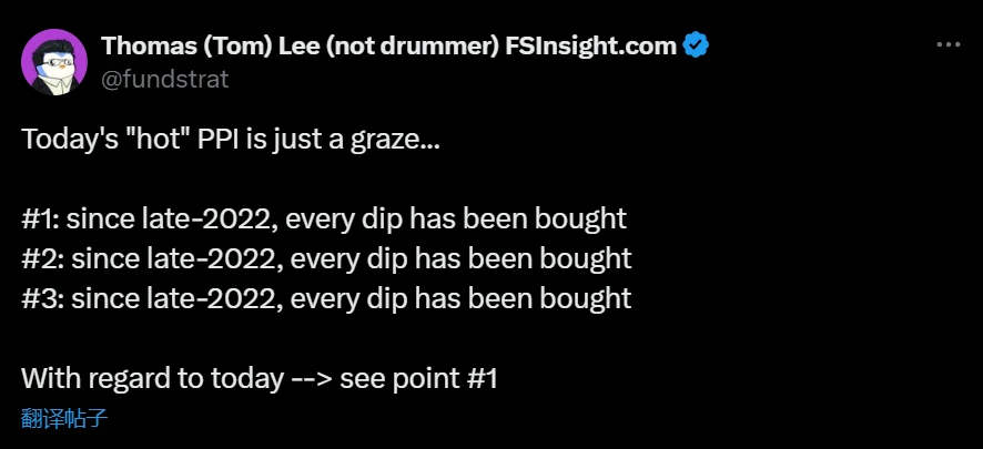 BitMine董事长Tom Lee:PPI数据影响有限,逢低吸纳成投资策略