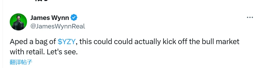 交易员James Wynn购入YZY代币引发散户牛市预期