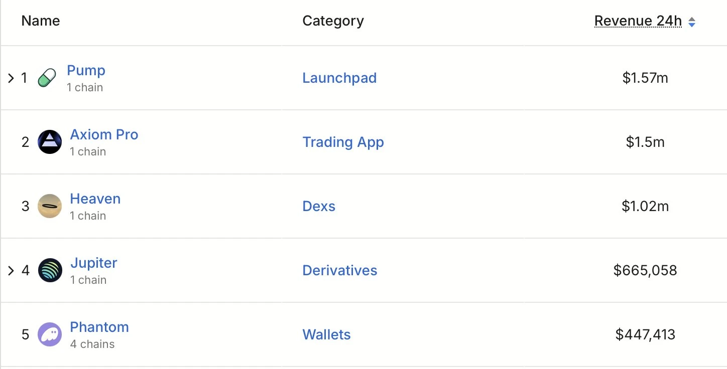 Heaven平台24小时协议收入达102万美元,位列Solana链上第三