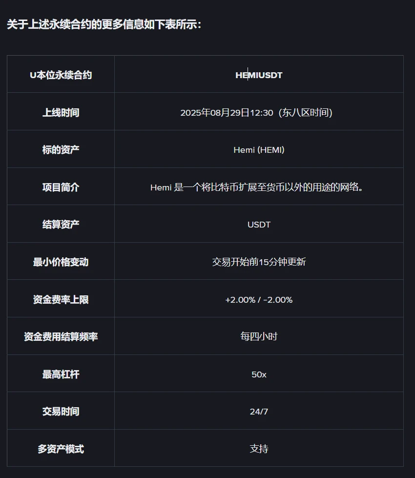 币安Alpha上线Hemi代币交易及永续合约,同步启动Booster空投活动