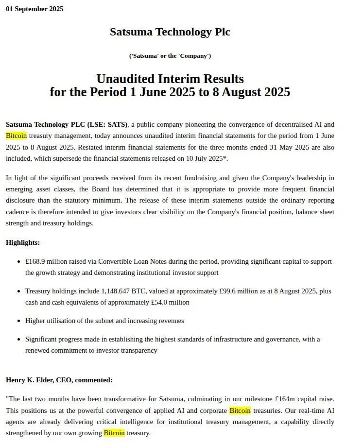 英国上市公司Satsuma Technology增持22.65枚比特币,总持仓达1,148.65枚