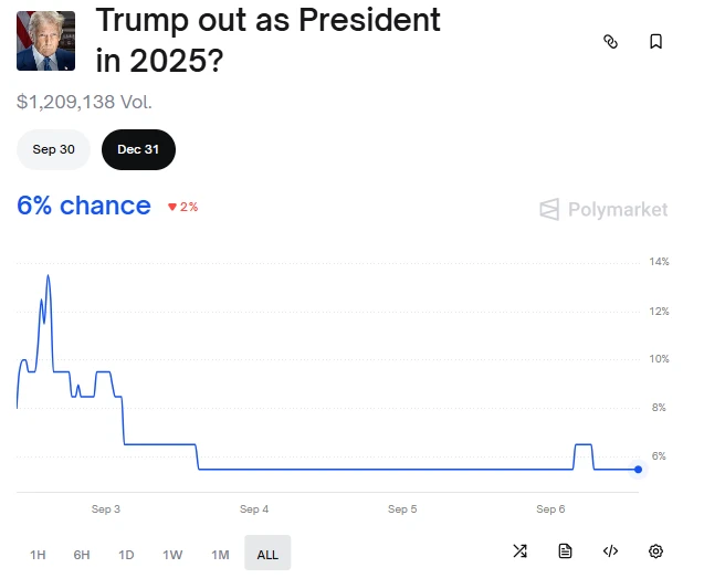 Polymarket预测特朗普2024年卸任概率为6%