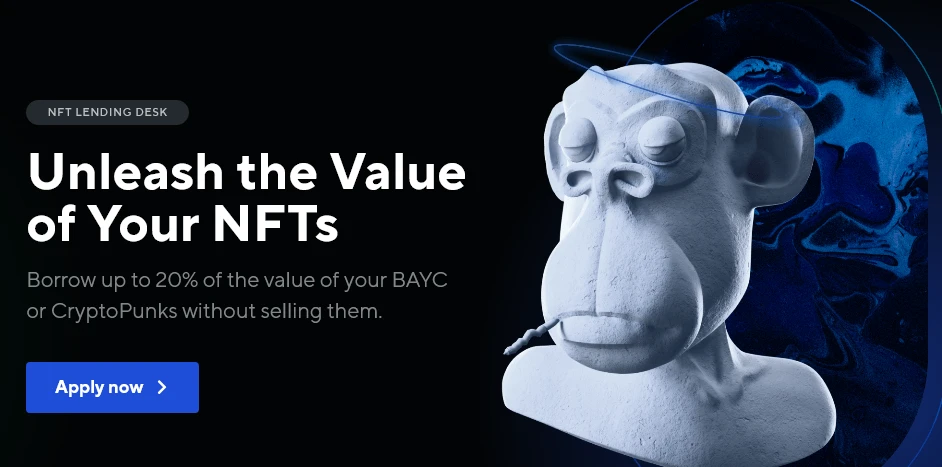 Nexo是中心化NFT质押服务平台,专门面向高价值蓝筹NFT持有者,最低贷款门槛为50万美元。平台接受CryptoPunks、Bored Ape Yacht Club等顶级NFT作为抵押品,并为每位用户配备专属账户经理,提供定制化服务。