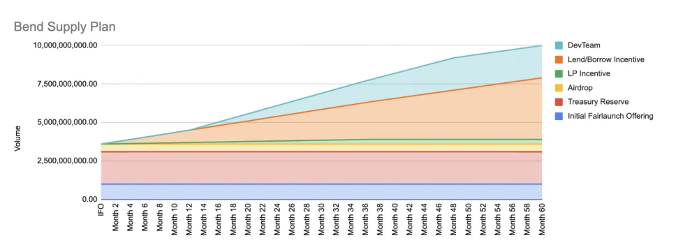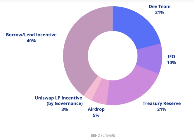 BendDAO的原生代币BEND初始总供应量为100亿枚,其分配方案涵盖多个用途。代币分配的具体比例包括流动性激励、团队份额、社区金库、生态系统发展基金等关键组成部分。BEND代币的核心功能是作为治理代币,持有者可通过质押获得veBEND治理权。